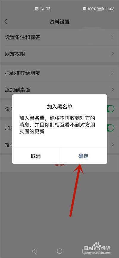 在进入的界面,点击确定按钮,这时对方搜索他就会显示用户不存在。