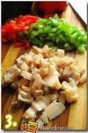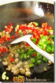 加入青红椒翻炒约半分钟后,调入盐、白胡椒粉,再将成品盛入焯烫过的鲍鱼壳内,撒上现磨白胡椒粉即可