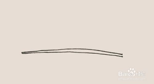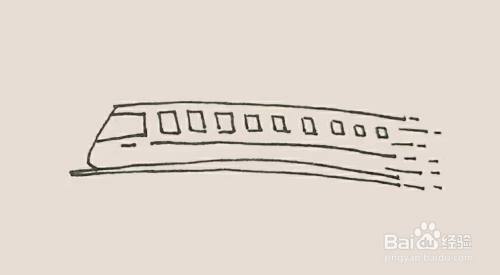 弧线上面再画上一条平行的长弧线,前面用一条斜线画出火车头的形状