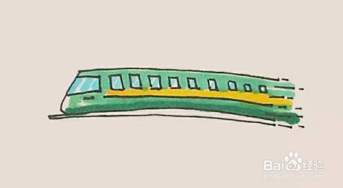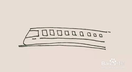 后面再画上一个个的小方形作为车窗,但注意要越来越小。