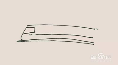 接着火车头的前面画出两条横线,连接起来形成前面的车窗。