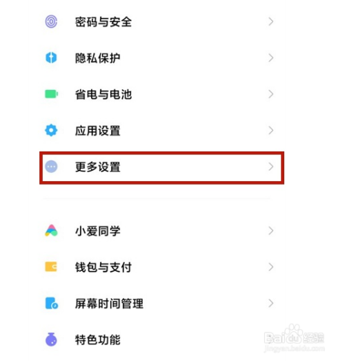 打开手机设置,点击更多设置