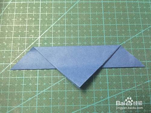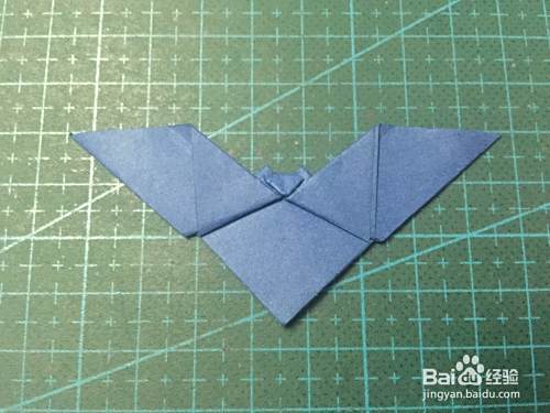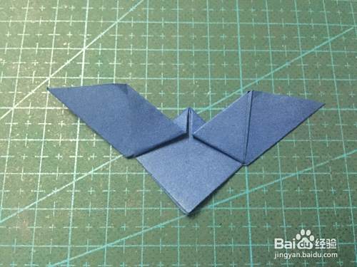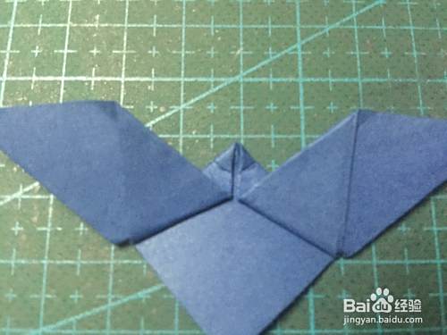 把剪开的三角往下折叠下去,这样蝙蝠就折叠好了