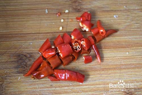 接着切一点红辣椒,喜欢吃辣可多切一些,不能吃辣少放。