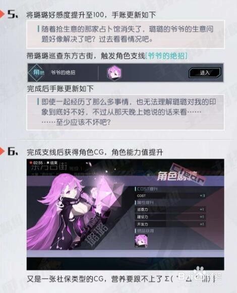 3、璐璐好感度提升至60,带着璐璐巡查【东方古街】,触发支线——厄运