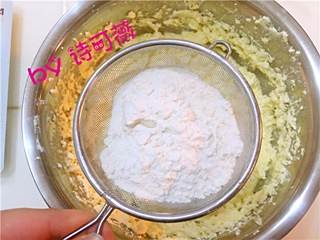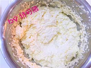 将黄油加入白沙糖打到羽化状态..如图中发白的样子...