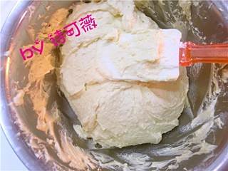 加完所有鸡蛋,黄油一定要打发充分蓬松状态..如图.