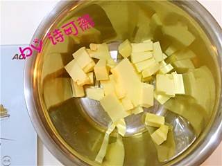 如果黄油无法软化,可以放入微波炉中叮几十秒,我这边太冷了.我选择叮了50秒...注意不要叮化了.