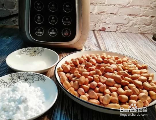 第一步,准备带壳的花生250g。将花生壳剥去。