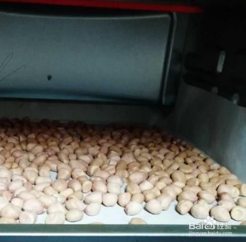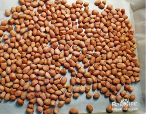 第二步,将剥好的花生仁平铺在盘子当中,尽量不要让花生仁堆积起来。