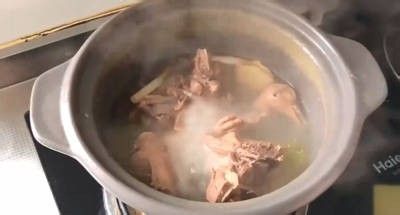 第二种方法: 将肉用开水烫一下后放入砂锅中,加水漫过鸽子肉。