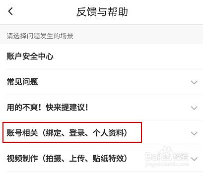 进入后,点击账号相关(绑定,登陆,个人资料)进入下一步。