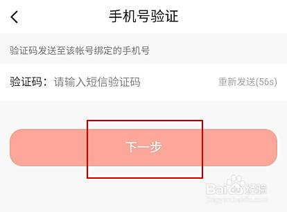 输入手机验证码,点击下一步即可完成操作。