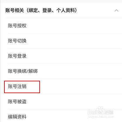 选择与自己相关的,这里因为我们演示的是注销账号,所以我选择【账号注销】
