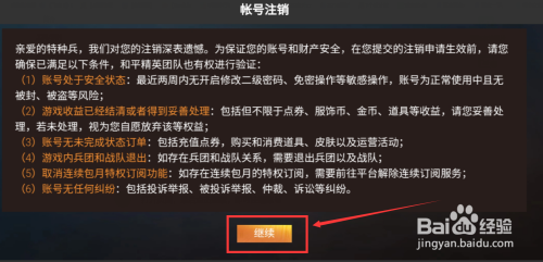 打开页面,最后只要满足注销条件,点击继续,即可注销账号