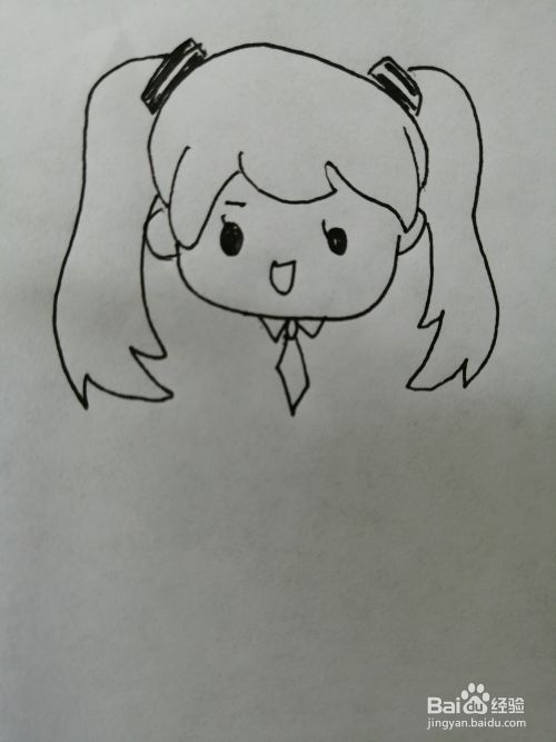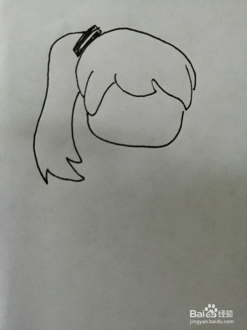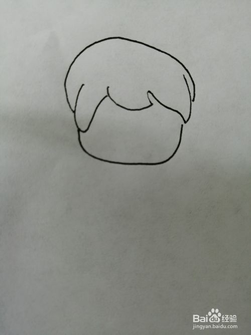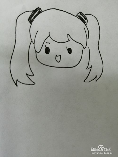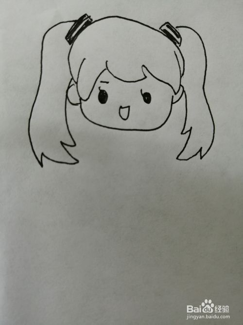 第二步,接着在可爱的椭圆形的脸上画出头发部分。