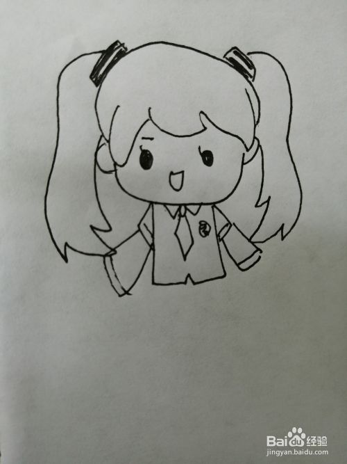 第五步,接着继续在可爱的小女孩的衣服画出来。