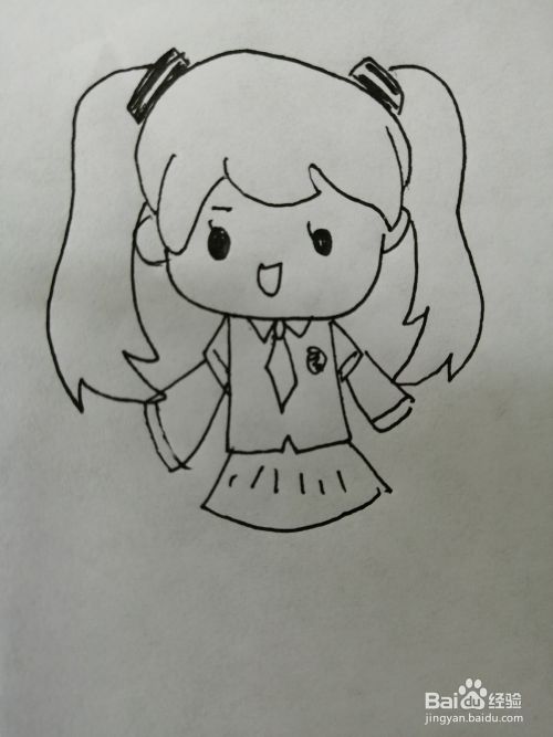 第六步,接着在可爱的小女孩的衣服下面画出漂亮的小裙子。