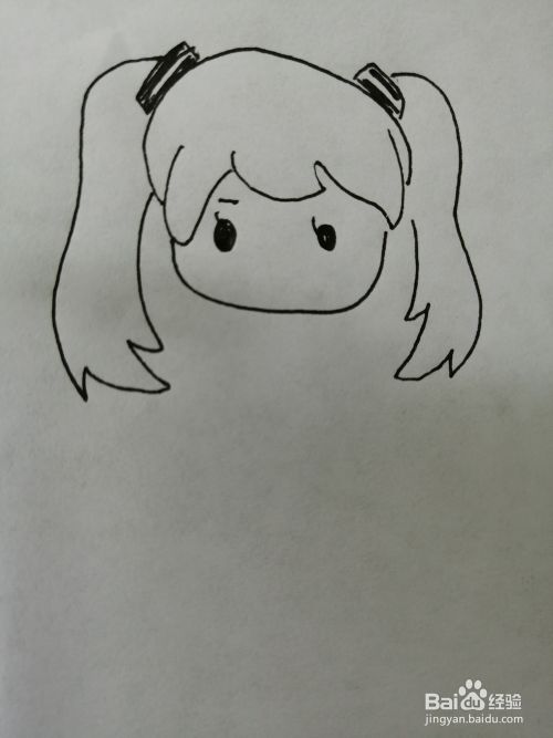 第四步,然后在可爱的小女孩的头部里面画出大眼睛和小嘴巴。