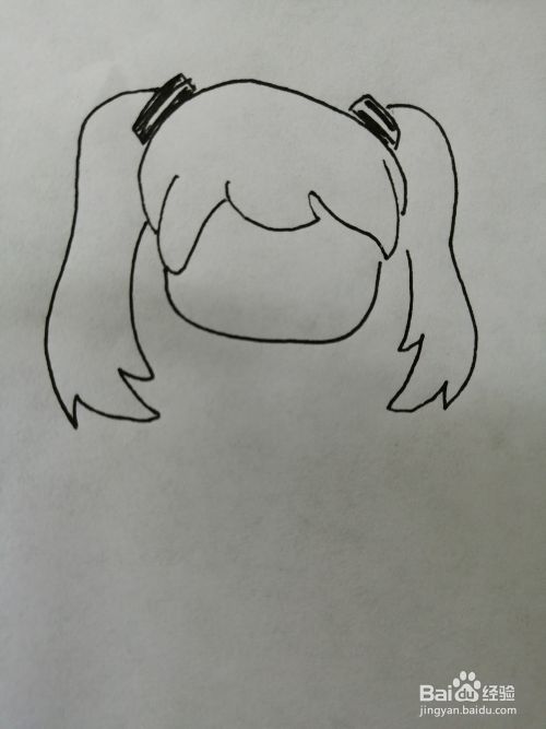 第三步,接着在可爱的小女孩的头顶上画出两个长长的辫子。