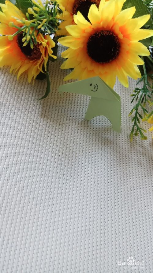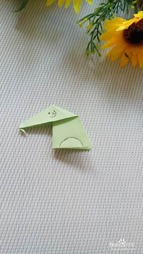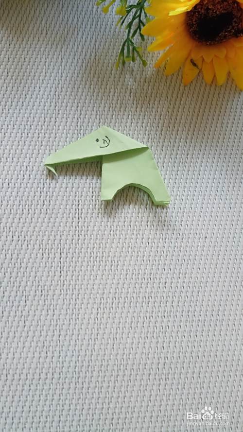 向左折叠一下,做成大象的鼻子,可以内折,做出大象的鼻孔部分。