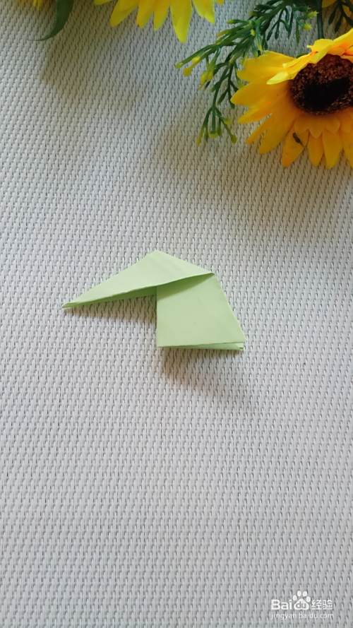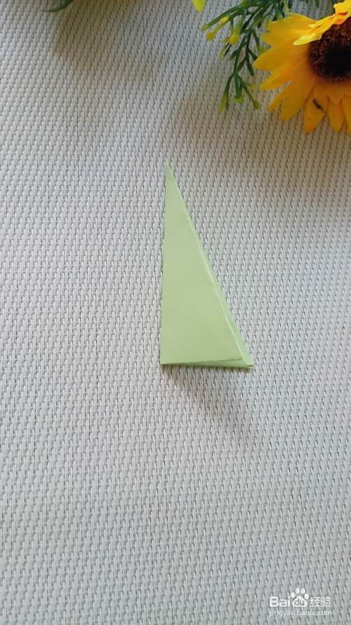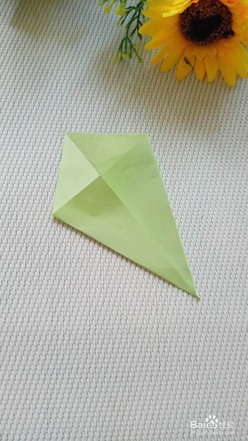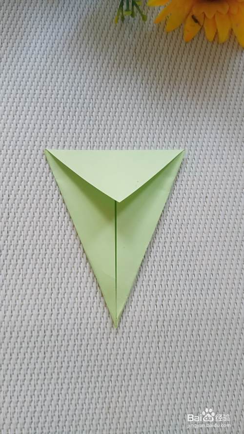 准备一张正方形的彩纸,对角折叠一下,然后左右两边向中线折叠出两个三角形。