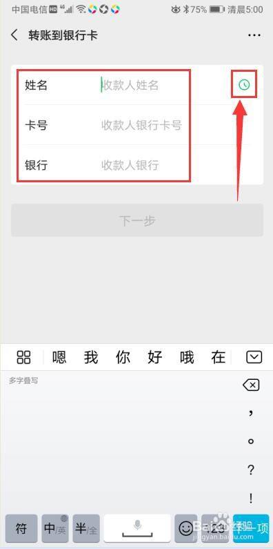 在转账到银行卡页面,填写银行卡信息,或选择已绑银行卡;
