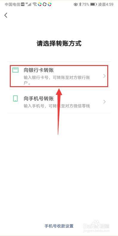 在转账方式页面,选择“向银行卡转账”;