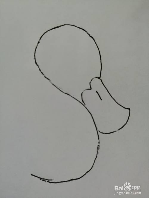 第二步,接着在s型曲线的上面画出小鸭子的头和嘴巴的轮廓。