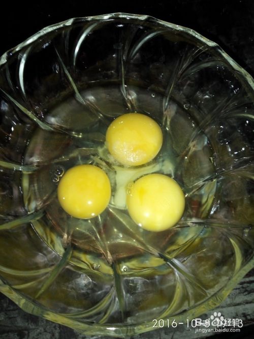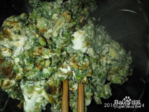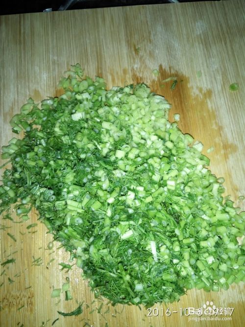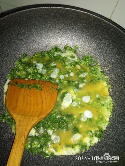 将鸡蛋里边加盐搅拌,茴香洗净切碎。