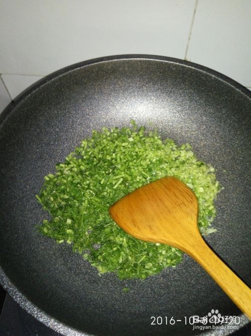 冷油倒进锅内,加茴香末翻炒,开火,继续翻炒