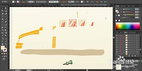 我们用淡绿色填充汽车的窗口,用桔红色填充座位。车体上面设置四个窗口,绘制出每一个窗口内部的座位。