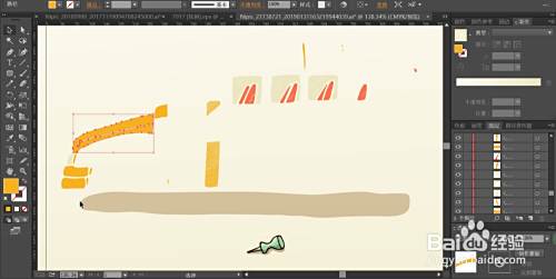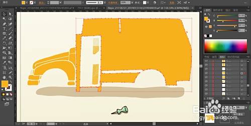 设置前景色为橙色,我们用钢笔画出汽车的车头轮廓,再用橙色去填充车头。接着,我们再画出汽车车厢的窗口与座位的轮廓路径。