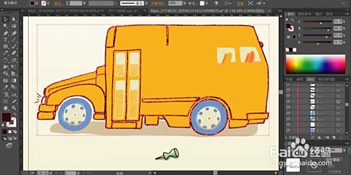 继续画出校车的后车厢的轮廓并用橙色填充,接着,我们画出校车车门的细节,让车体的车门轮廓呈现出来。