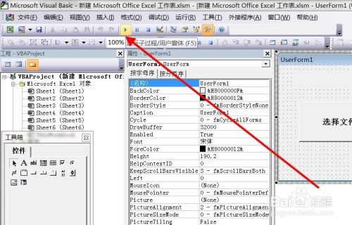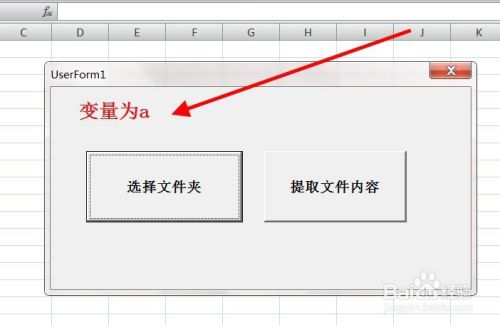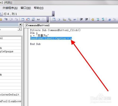 在按钮1中输入:UserForm1.Label1.Caption = a