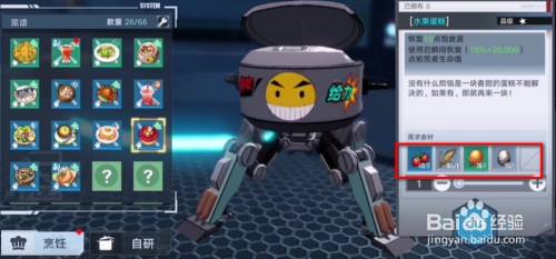 选择材料是2个草莓,其他为1,点击烹饪。