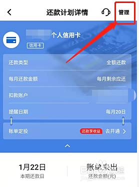 进入到还款计划详情页面,点击管理。