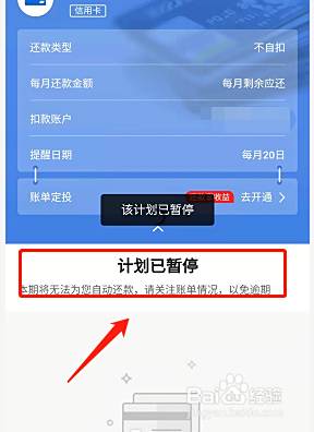 自动还款的计划暂停之后,即使逾期也不会从储蓄卡账户中扣除。