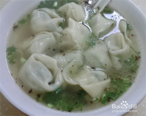 【原料】:大白菜3片、猪肉馅150克、厚的大馄饨皮150克、香菜1棵、葱1根