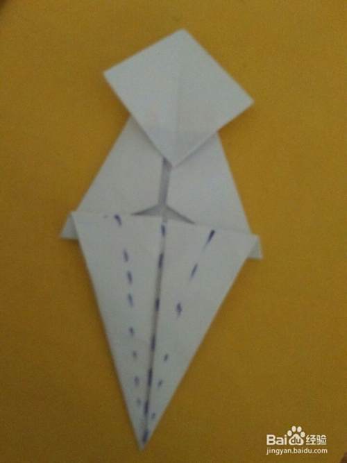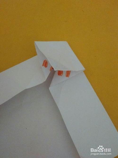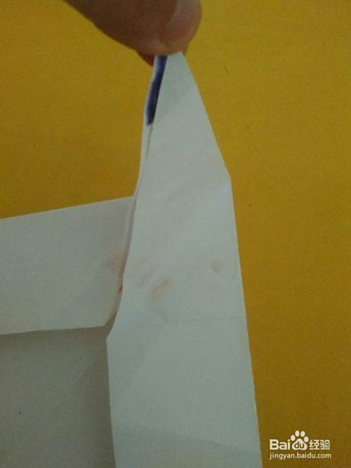 沿着折痕,将折叠重叠的部分,打开一个袋子,如图所示。