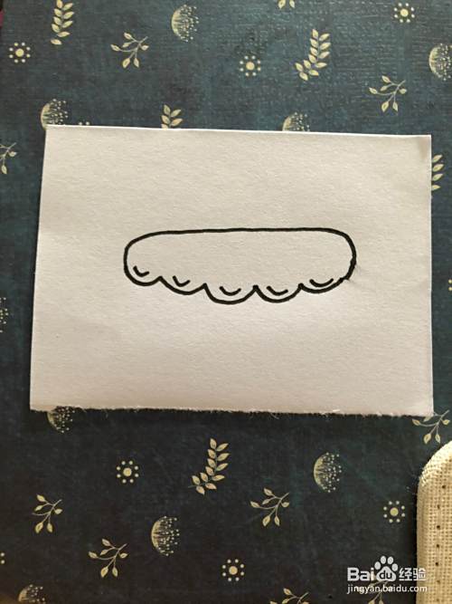 如图所示,首先我们在准备好的一张空白的纸上用笔画出蛋糕的中间部位如图所是像云朵反过来的一个形状,再加上一些小小的圆圆的弧线,显得更加的精致小巧。