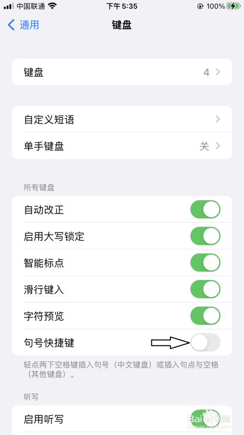 在键盘界面找到句号快捷键开关,把开关关掉即可
