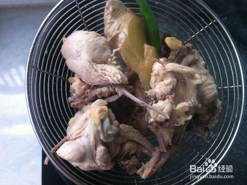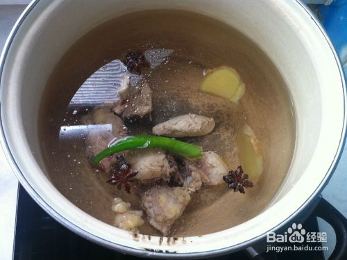 将汤锅注入清水,将鸡骨架、葱、姜、大料放入,大火烧开,转入中火慢煮,汤汁熬好后,将所有食材和汤一起倒入砂锅中。(汤汁熬好什么颜色?看图)