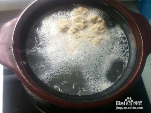 猪肉馅从冰箱拿出搅拌一下,在水温20度左右时,放入猪肉馅。(20度左右的水温,锅边刚冒出小泡时)水开后,调中火。