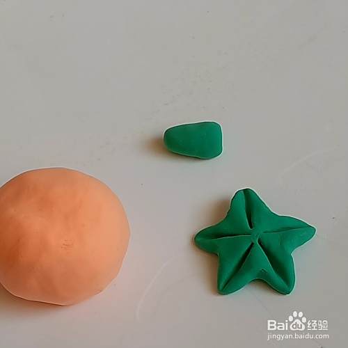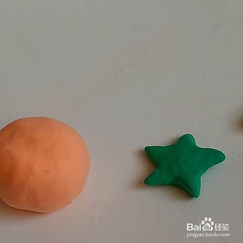 我们再用绿色的彩泥做一个小小的圆柱做果柄