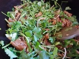 加入香菜后就关火,翻炒匀后出锅就可以了。
