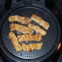 顸热好后放上鱼条,按烤鱼键煎