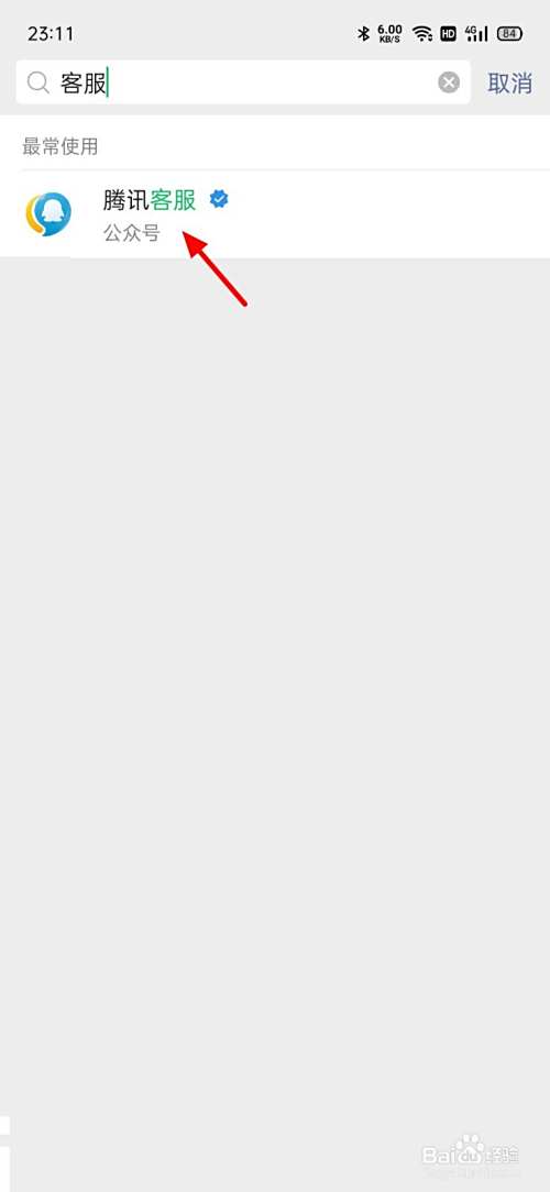 打开微信,搜索关键词,打开腾讯客服选项。输入关键词搜索,完成验证,单击清除即可。