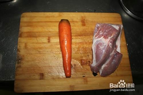 准备一个胡萝卜和一块后腿肉。