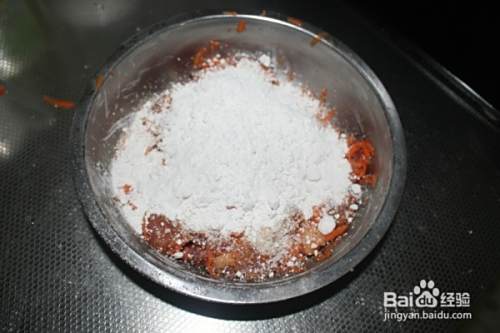 再加入适量的面包糠和淀粉均匀的裹在肉的外面。